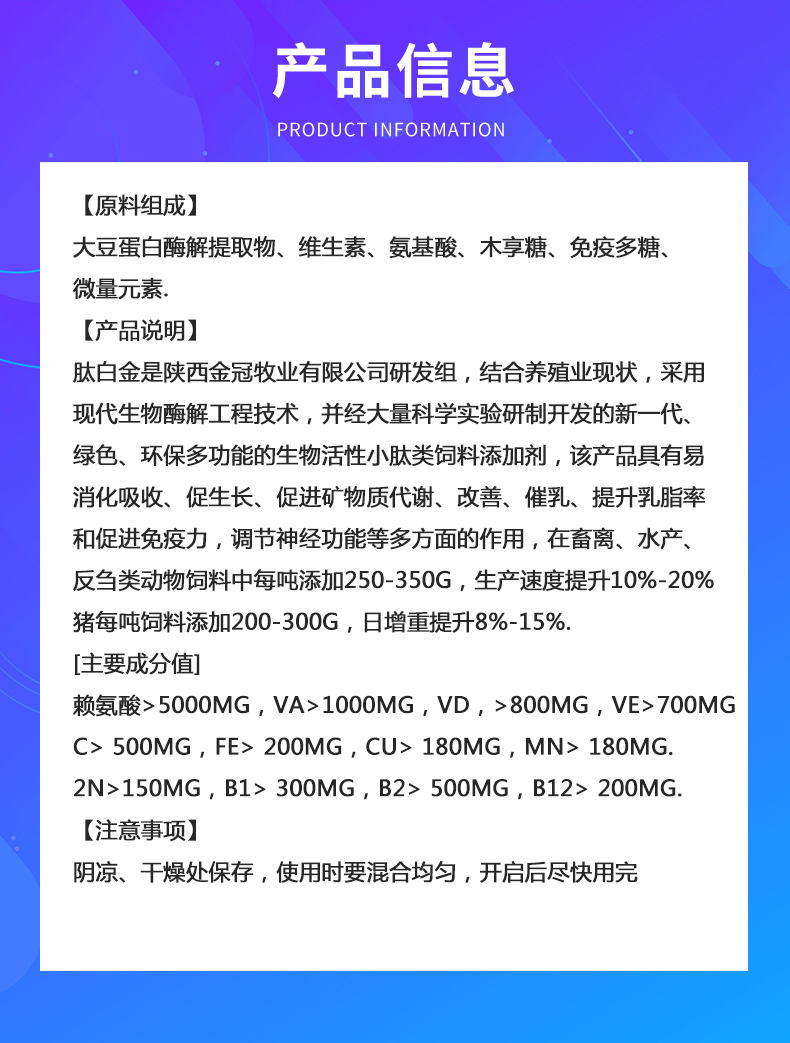 畜禽多维肽白金补充饲料蛋白质改变畜禽毛色促益生菌生长催肥增重